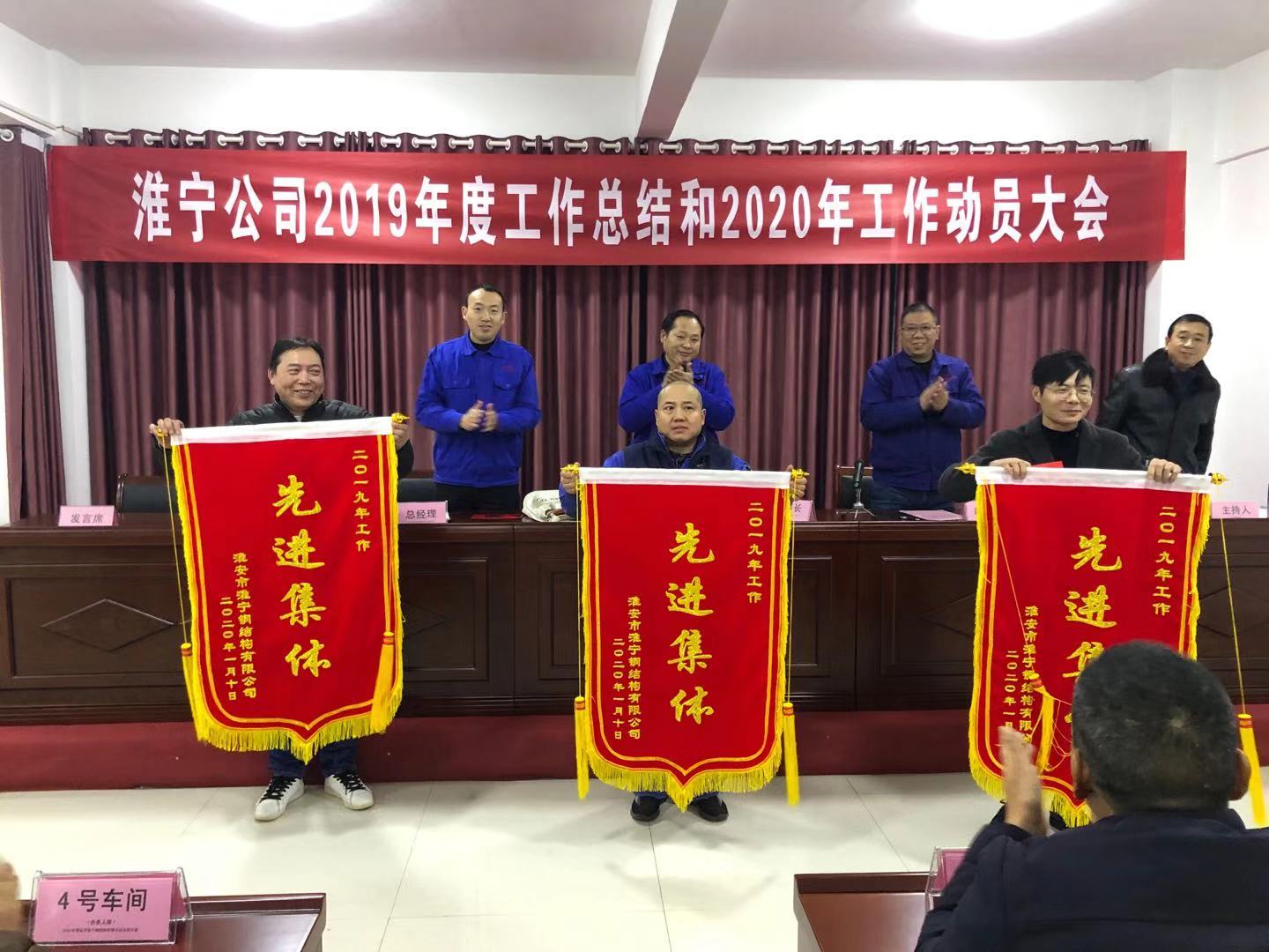 2020年1月10日,淮安市淮寧鋼結(jié)構(gòu)有限公司在本公司辦公樓一樓會議室召開了2019年度工作總結(jié)和2020年工作動員大會,從車間到管理層共有150余人參加了會議。會上首先有總經(jīng)理秦電文致新年賀詞,接著由董事長陳國寶先生代表公司作《2019年度工作總結(jié)和2020年工作動員報告》,他實事求是地總結(jié)了過去一年的工作,對存在的問題進(jìn)行深入淺出地分析,并提出了新的一年的發(fā)展思路和年產(chǎn)鋼結(jié)構(gòu)3萬噸、實現(xiàn)銷售收入1億元、利稅2000萬元的奮斗目標(biāo)及5個方面的重點工作措施。會上還采取無記名投票方式差額選舉產(chǎn)生3個先進(jìn)集體和24名優(yōu)秀員工,并對獲得“先進(jìn)集體”和“優(yōu)秀員工”稱號的車間、部門、員工進(jìn)行了表彰和獎勵,先進(jìn)集體,優(yōu)秀員工代表作表態(tài)發(fā)言,整個會議歷時兩小時三十分鐘,會議全過程始終洋溢著振奮、熱烈、愉快的氣氛。會議結(jié)束后,全體參會員工參加了公司舉辦的晚宴。